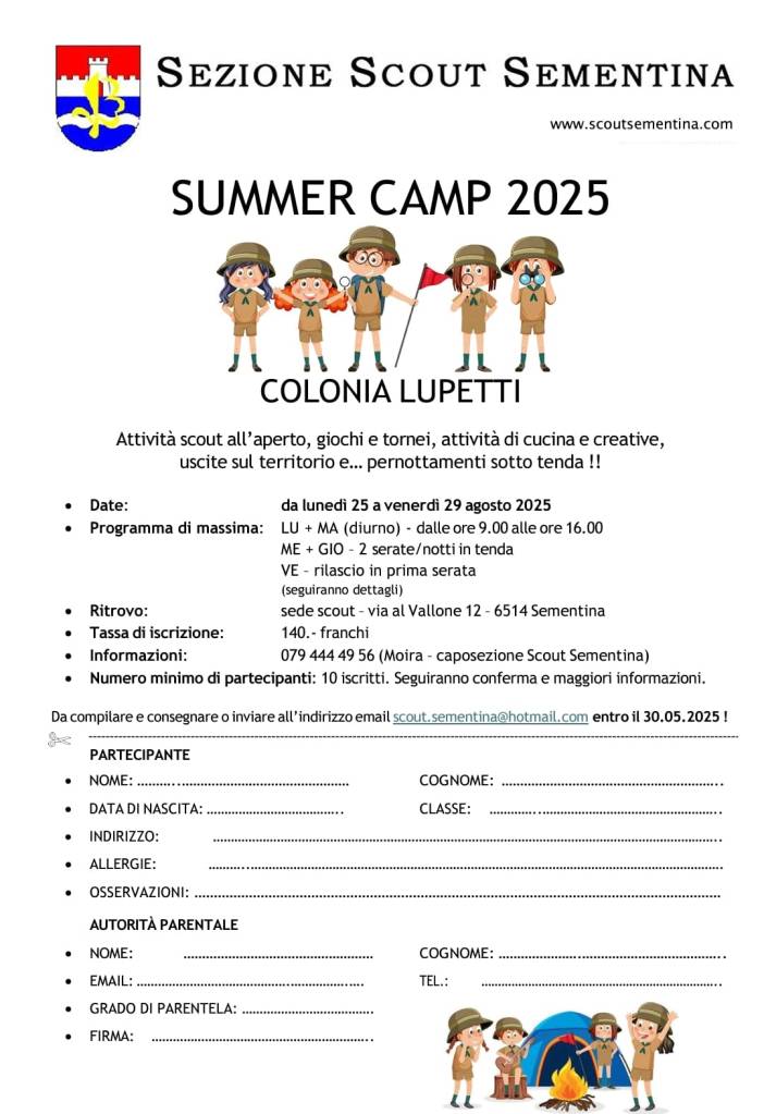 L’attività scout ordinaria ricomincerà sabato 16 settembre alle 14.00 presso la nostra sede di Via al Vallone 12, Sementina!